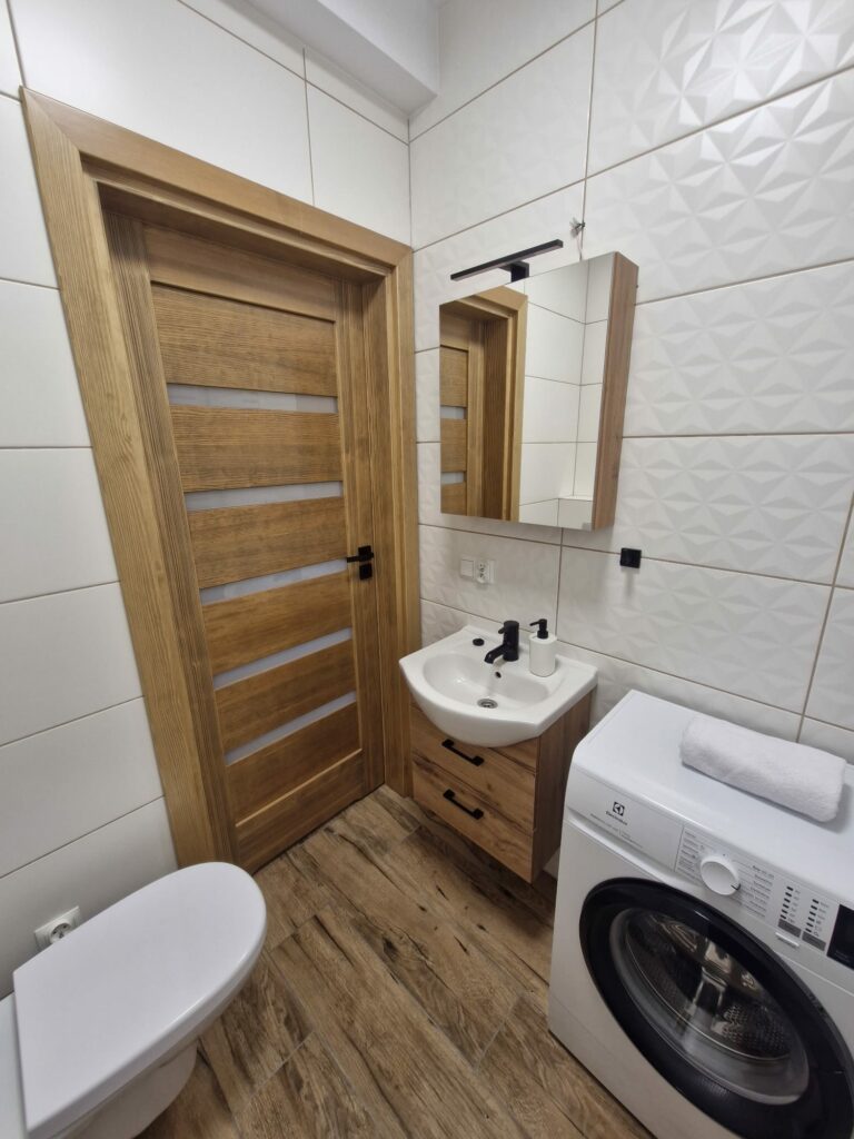 - toaleta z pralką, niezwykle praktyczna przy dłuższych pobytach.