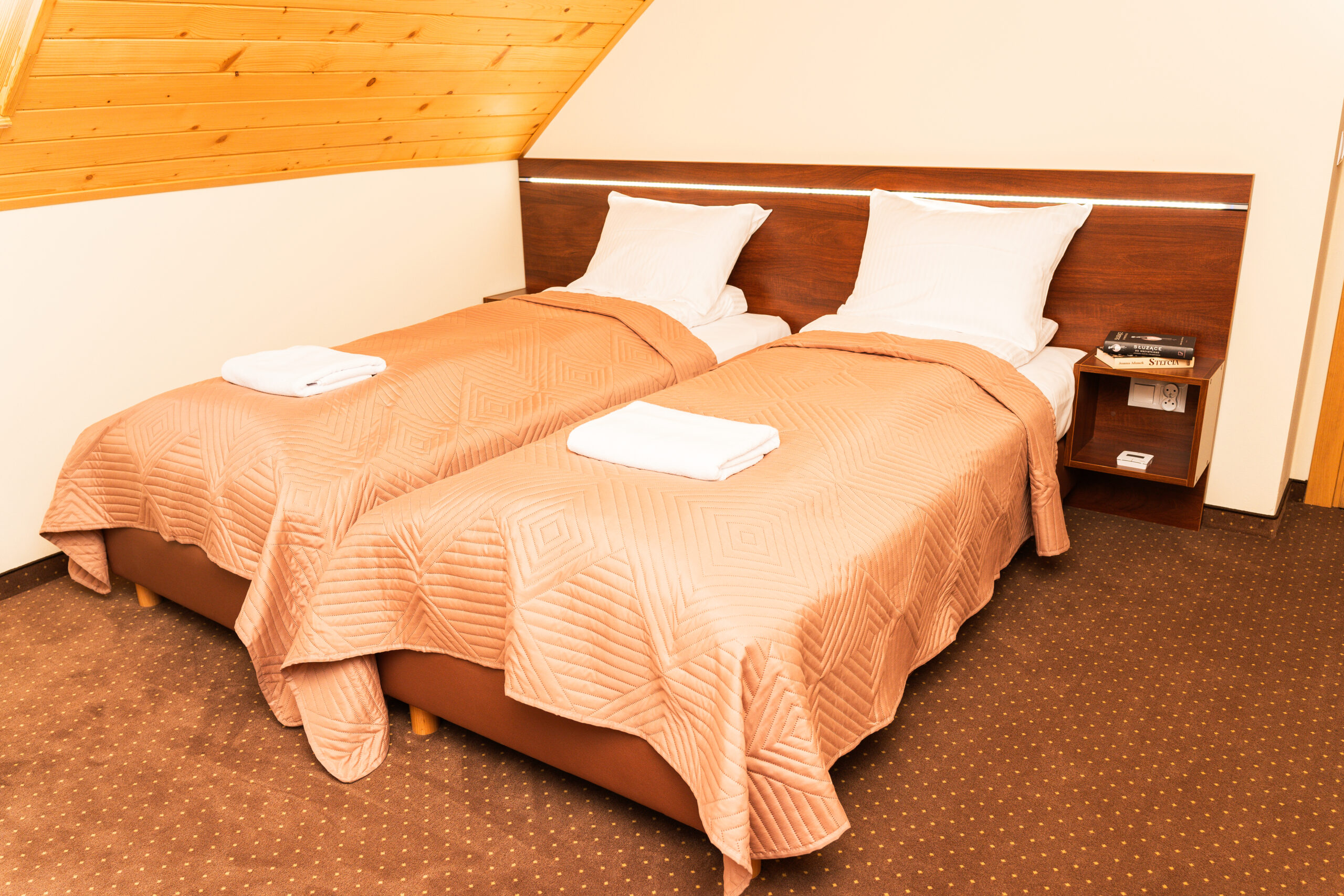 - druga sypialnia to dwa pojedyncze łóżka (90×200 cm), komoda oraz balkon z widokiem na okolicę.