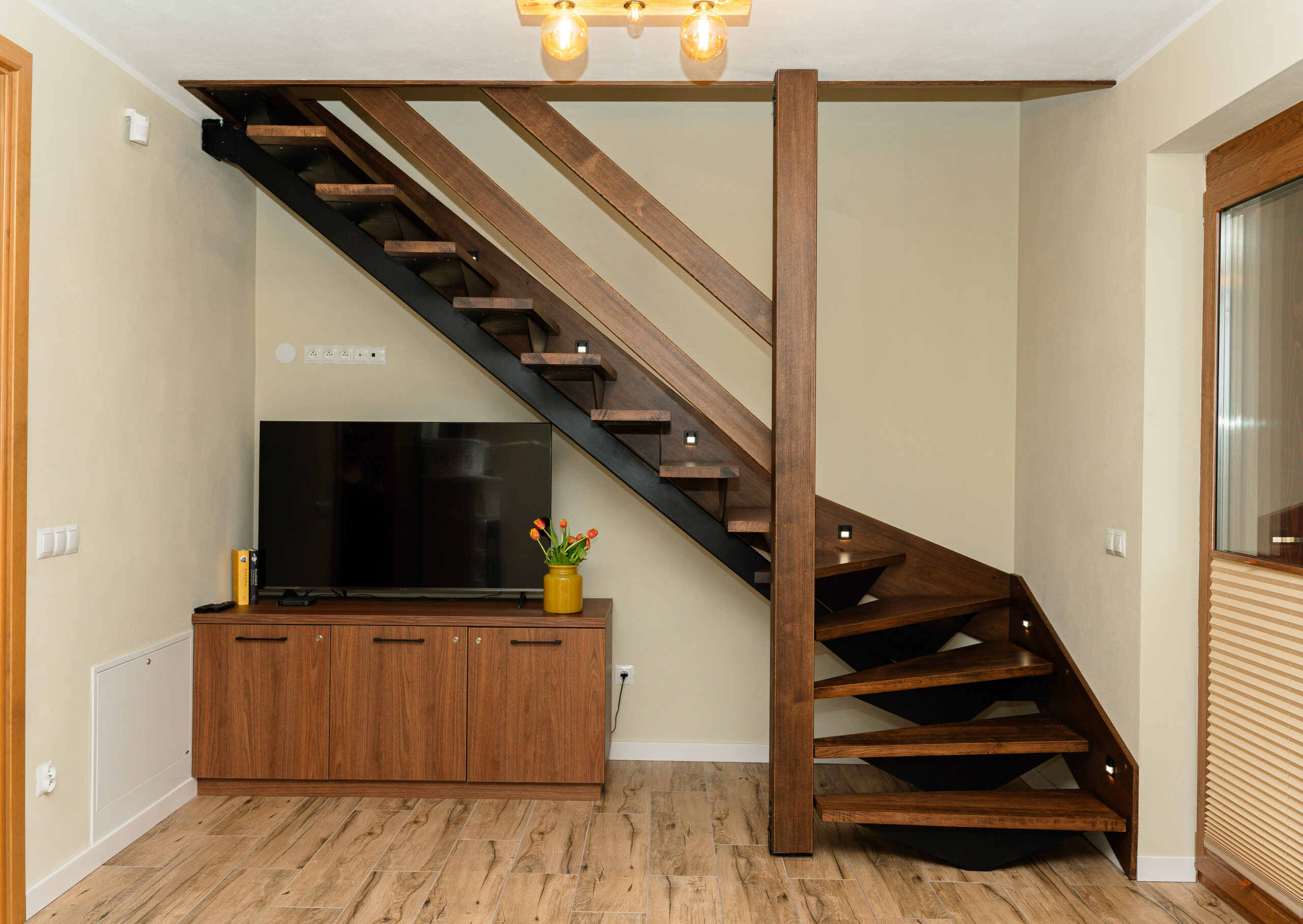 Na parterze znajduje się jasna, otwarta część dzienna: